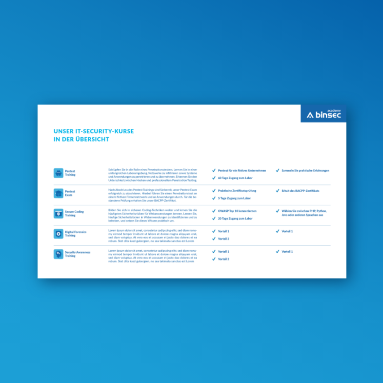 Von IT-Security Experten entwickelt, bietet die binsec academy professionelle und praxisnahe Online-Schulungen an, um IT-Spezialisten zu schulen und um das Bewusstsein für eine sichere digitale Welt zu bestärken. Der neue Unternehmensauftritt mit reduzierteren Farben und minimalistischen Design setzt die Betonung auf mehr Klarheit und Struktur.